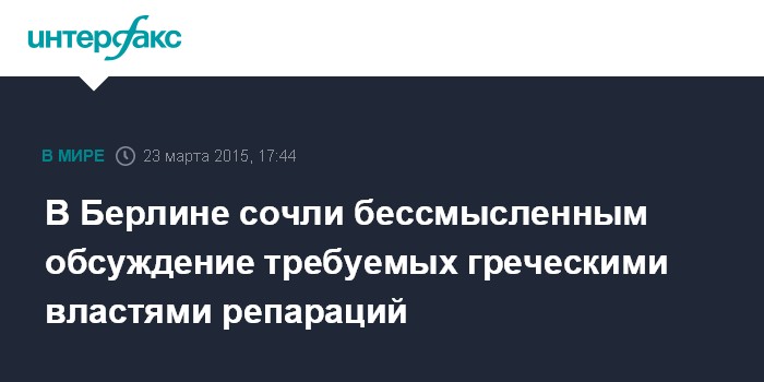 В Берлине сочли бессмысленным обсуждение требуемых греческими властями репараций