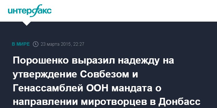 Порошенко выразил надежду на утверждение Совбезом и Генассамблей ООН мандата о направлении миротворцев в Донбасс