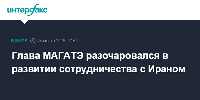 Москва. 24 марта. INTERFAX.RU - Генеральный директор Международного агентства по атомной энергии (МАГАТЭ) Юкия Амано заявил, что он не удовлетворен сотрудничеством с Ираном, направленным на получение доказательств мирного характера иранской ядерной программы (ИЯП).