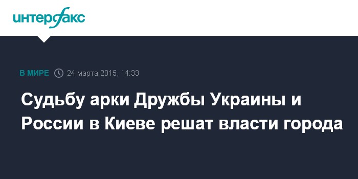 Москва. 24 марта. INTERFAX.RU - Вопрос дальнейшего существования арки Дружбы народов Украины и России находится в компетенции киевских властей, считает украинский вице-премьер, министр культуры Вячеслав Кириленко.