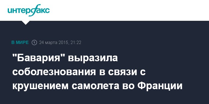 Москва. 24 марта. INTERFAX.RU - Немецкий футбольный клуб "Бавария" выразил соболезнования семьям погибших в авиакатастрофе во Франции.