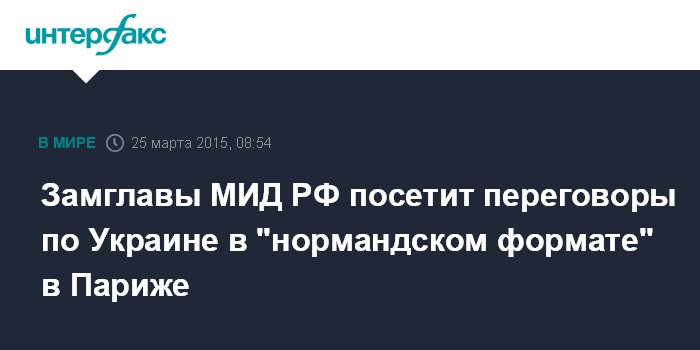 Москва. 25 марта. INTERFAX.RU - Замглавы МИД РФ Григорий Карасин сообщил, что в среду направится в Париж, где примет участие в переговорах в "нормандском формате" по Украине.