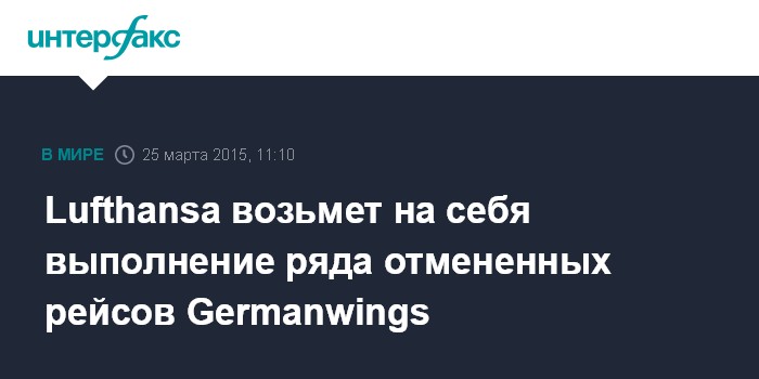 Москва. 25 марта. INTERFAX.RU - Германская авиакомпания Lufthansa намерена выполнить ряд рейсов своей дочерней компании Germanwings, которая аннулировала некоторые рейсы, сообщает в среду агентство EFE.