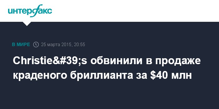Москва. 25 марта. INTERFAX.RU - Крупнейший в мире аукционный дом Christie's начал судебную тяжбу с наследниками итальянского сенатора, обвинивших его в продаже краденого розового бриллианта.