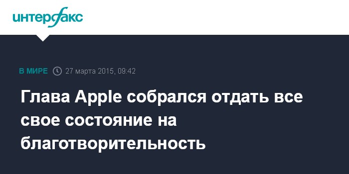 Москва. 27 марта. INTERFAX.RU - Главный исполнительный директор американской компании Apple Inc. Тим Кук планирует потратить все свое состояние на благотворительные цели.