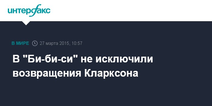 Москва. 27 марта. INTERFAX.RU - Креативный директор "Би-би-си" Алан Йентоб в эфире передачи Newsnight заявил, что не исключает возвращения уволенного ведущего Top Gear Джереми Кларксона на работу в корпорацию, сообщает BBC News.