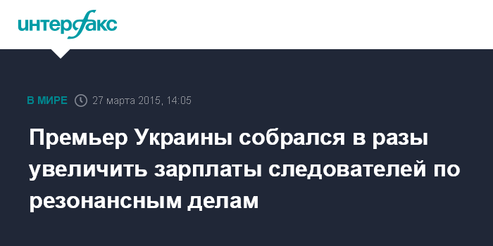 Москва. 27 марта. INTERFAX.RU - Премьер-министр Украины Арсений Яценюк заявил о намерении правительства в несколько раз увеличить зарплату следователям МВД, занимающимся особо важными делами.