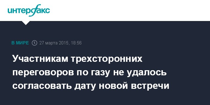 Москва. 27 марта. INTERFAX.RU - Сроки проведения новой трехсторонней встречи по газу между Россией, Украиной и Еврокомиссией пока не согласованы окончательно.