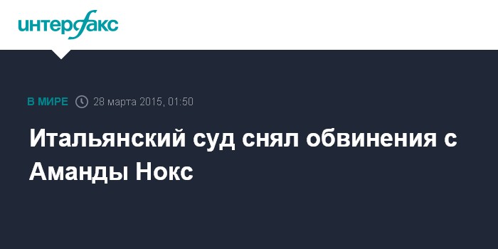 Москва. 28 марта. INTERFAX.RU - Верховный суд Италии снял с граждански США Аманды Нокс обвинения в убийстве британской студентки, сообщило агентство Bloomberg.