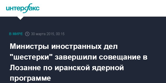 Москва. 30 марта. INTERFAX.RU - Совещание глав внешнеполитических ведомств государств "иранской шестерки" под председательством верховного представителя ЕС по иностранным делам Федерики Могерини завершилось поздно вечером в воскресенье в Лозанне, сообщили в Брюсселе источники в ЕС.
