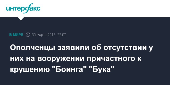 Москва. 30 марта. INTERFAX.RU - В руководстве самопровозглашенной Донецкой народной республики отрицают причастность к уничтожению малайзийского "Боинга", разбившегося под Донецком, считают, что виновником трагедии был украинский военный самолет или "Бук".