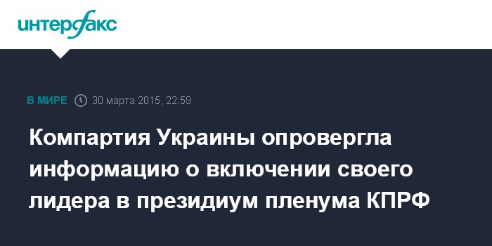 Москва. 30 марта. INTERFAX.RU - В Компартии Украины опровергли информацию о включении ее лидера Петра Симоненко в президиум пленума Коммунистической партии РФ.