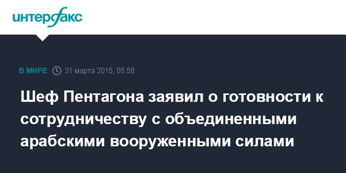 Москва. 31 марта. INTERFAX.RU - Соединенные Штаты поддержали идею создания объединенных вооруженных сил арабских государств и готовы к сотрудничеству с ними, заявил министр обороны США Эштон Картер.