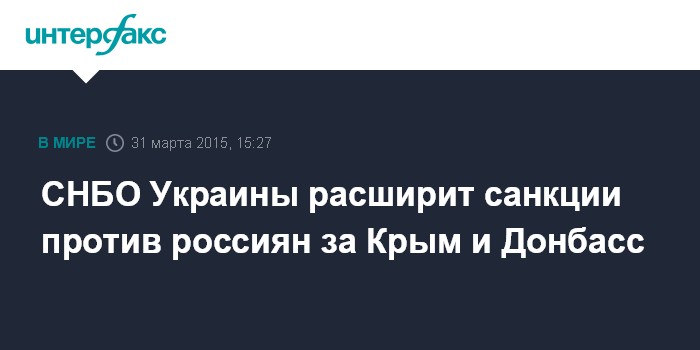 Москва. 31 марта. INTERFAX.RU - Совет национальной безопасности и обороны Украины в скором времени расширит санкции в отношении граждан России, которые причастны к присоединению Крыма и военным действиям в Донбассе, заявил президент Петр Порошенко.