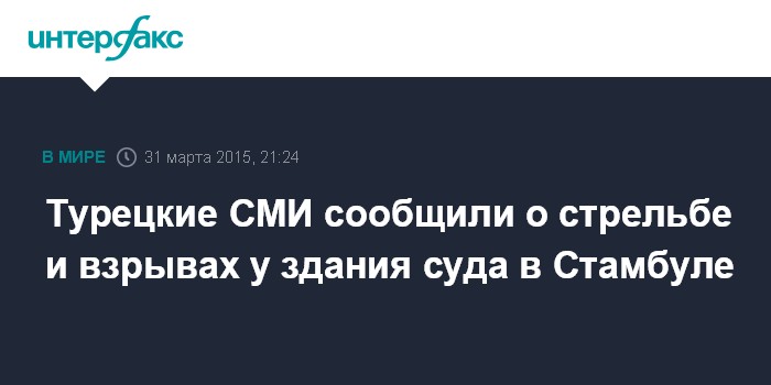 Москва. 31 марта. INTERFAX.RU – В Стамбуле в районе здания суда, где ранее боевики левой группировки "Революционный народно-освободительный фронт" взяли в заложники прокурора, были зафиксированы звуки взрыва и перестрелки, сообщают во вторник западные СМИ.