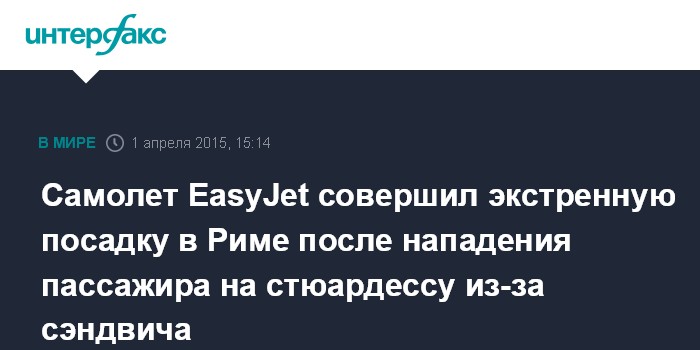 Москва. 1 апреля. INTERFAX.RU - Рейс Женева-Приштина (Косово) авиакомпании EasyJet совершил экстренную посадку в Риме после того, как один из пассажиров напал на стюардессу, сообщает в среду Daily Mail.