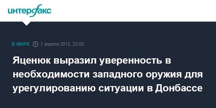 Яценюк выразил уверенность в необходимости западного оружия для урегулированию ситуации в Донбассе