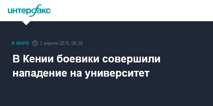 Москва. 2 апреля. INTERFAX.RU - Группа вооруженных людей атаковала университет в кенийском городе Гарисса на северо-востоке страны, сообщает в четверг BBC News.