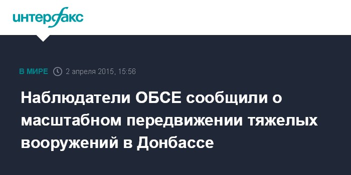 Москва. 2 апреля. INTERFAX.RU - Замглавы специальной мониторинговой миссии (СММ) ОБСЕ Александр Хуг заявил о масштабной передислокации тяжелых вооружений, которая зафиксирована наблюдателями этой организации в Донбассе.
