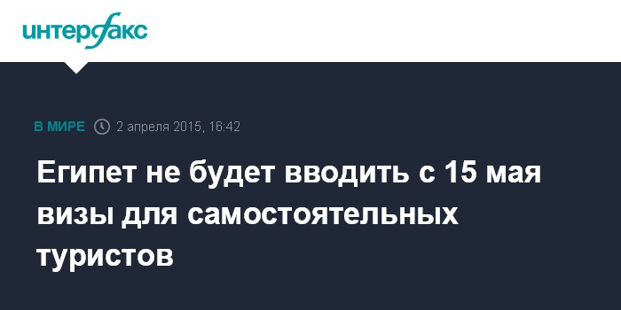 Москва. 2 апреля. INTERFAX.RU - Египет перенес сроки введения виз для самостоятельных путешественников, говорится в официальном сообщении министерства иностранных дел республики.