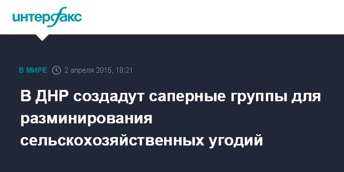 Москва. 2 апреля. INTERFAX.RU - В самопровозглашенной Донецкой Народной Республике намерены создать специальные саперные подразделения для разминирования пахотных земель.