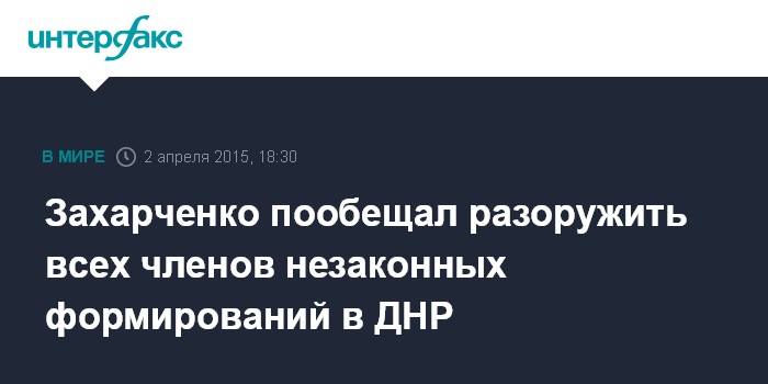"Все незаконные вооруженные формирования будут расформированы. Вы боитесь потерять свой статус? Я скажу честно: корпус ждет, внутренние войска ждут. Если вы хотите служить народу, будьте добры вступайте в ряды Вооруженных сил, МГБ, МВД и служите", - сказал Захарченко, обращаясь к вооруженным жителям республики.