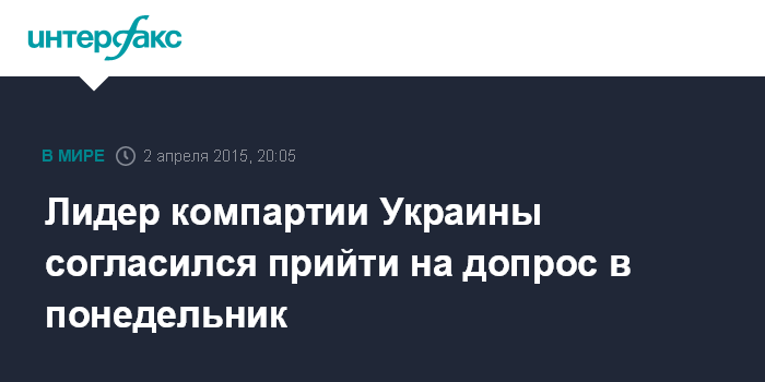 Москва. 2 апреля. INTERFAX.RU - Адвокат лидера КПУ Петра Симоненко получил повестку на допрос в СБУ, Симоненко согласился ответить на вопросы следователя в понедельник, 6 апреля.