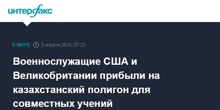 Москва. 3 апреля. INTERFAX.RU - На учебный полигон "Илийский" в Алматинской области Казахстана в пятницу прибыли передовые группы военнослужащих США и Великобритании для участия в международных тактико-специальных миротворческих учениях "Степной орел-2015", сообщила пресс-служба Минобороны республики.