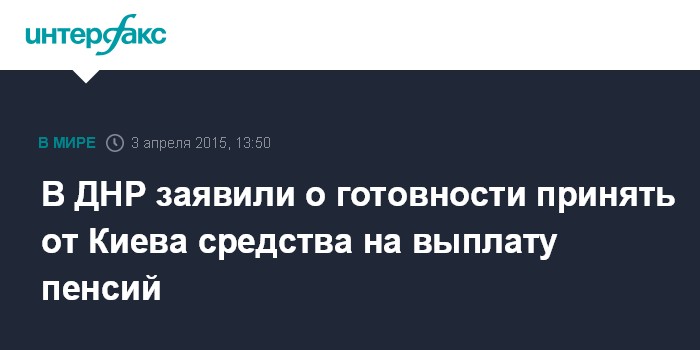 Москва. 3 апреля. INTERFAX.RU - В самопровозглашенной ДНР заявили о готовности содействовать международному контролю за целевым расходованием средств на выплату пенсий и пособий в случае их поступления от властей Украины.