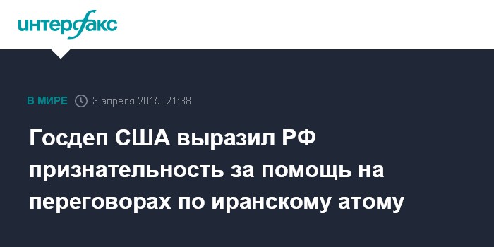 Госдеп США выразил РФ признательность за помощь на переговорах по иранскому атому