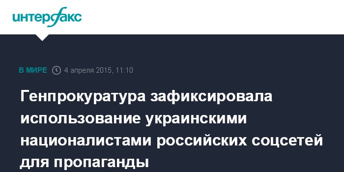 Москва. 4 апреля. INTERFAX.RU - Генеральная прокуратура России обеспокоена фактами использования украинскими националистическими организациями в своих целях российских соцсетей.