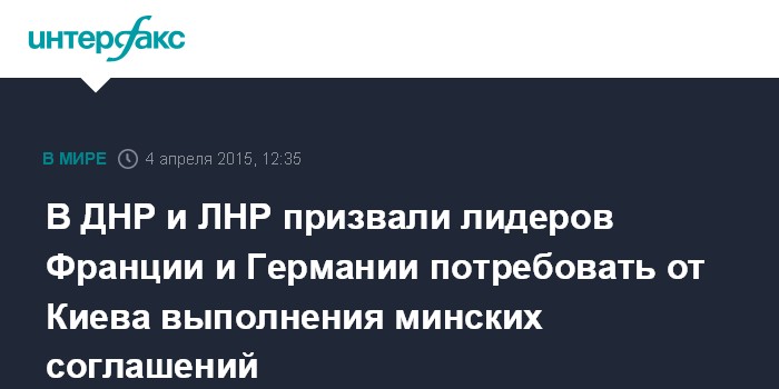 В ДНР и ЛНР призвали лидеров Франции и Германии потребовать от Киева выполнения минских соглашений