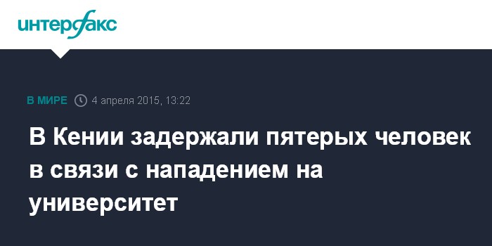 Москва. 4 апреля. INTERFAX.RU - Сотрудники полиции Кении задержали пятерых человек, предположительно имеющих отношение к кровопролитному нападению на университет в городе Гарисса, сообщают в субботу французские СМИ.