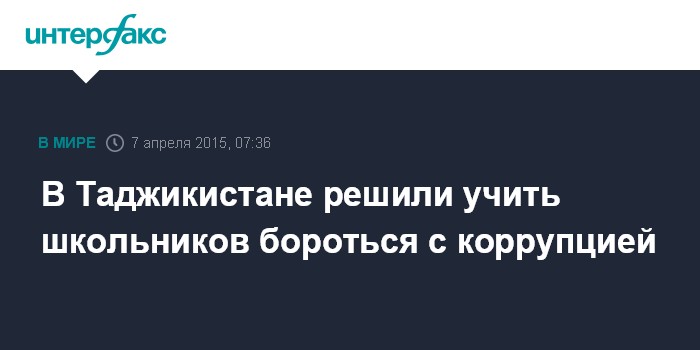 Москва. 7 апреля. INTERFAX.RU - Премьер-министр Таджикистана Кохир Расулзода предложил ввести в школах страны уроки борьбы с коррупцией, сообщила во вторник пресс-служба таджикского правительства.