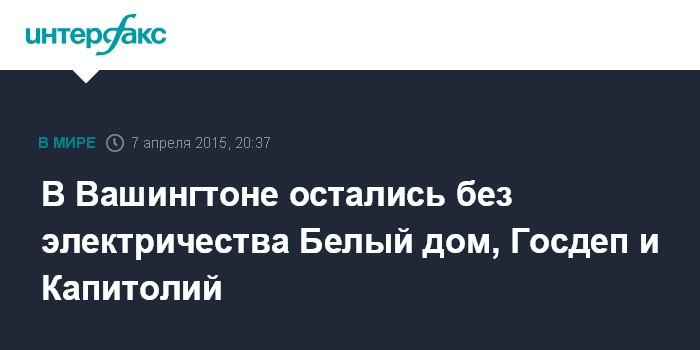 Москва. 7 апреля. INTERFAX.RU - Перебои в электроснабжении зафиксированы во вторник в зданиях Белого дома, Госдепартамента США, в Капитолии и в министерстве юстиции, сообщает американский телеканал Fox News.