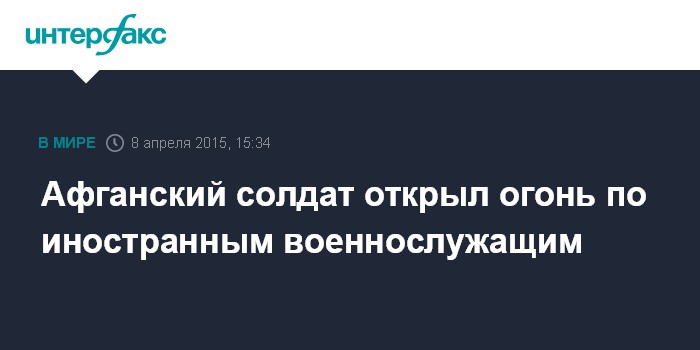 Москва. 8 апреля. INTERFAX.RU - В результате стрельбы, которую открыл афганский солдат на военном объекте в городе Джелалабад, погиб военнослужащий НАТО, сообщают в среду западные СМИ.