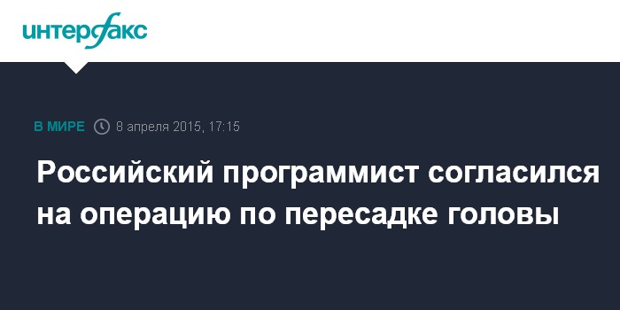 "Я бы не пожелал такого (операции по пересадке головы - ИФ) никому. И не позволил бы никому сделать такое со мной, так как есть много вещей хуже, чем смерть", - сообщил CNN избранный глава Американской ассоциации нейрохирургов Хант Блатьер. Он также заявил, что операция на обезьянах не гарантирует ее успеха при проведении на людях.