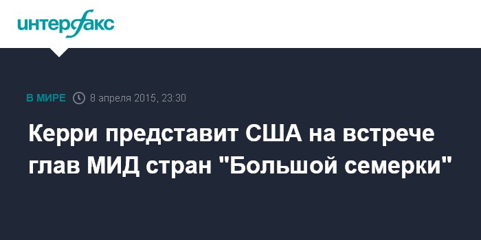Москва. 8 апреля. INTERFAX.RU - Госсекретарь США Джон Керри отправится на следующей неделе в немецкий город Любек для участия во встрече министров иностранных дел G7, сообщила в среду представитель госдепа Мари Харф.