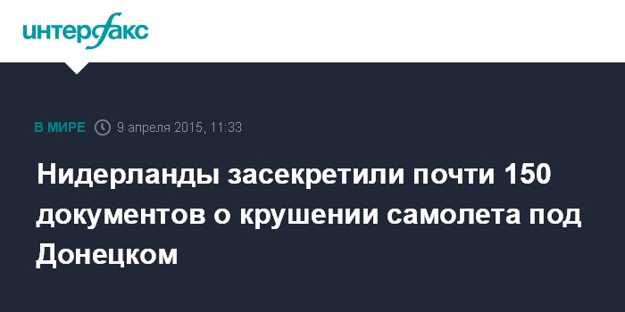 Москва. 9 апреля. INTERFAX.RU - Правительство Нидерландов засекретило 147 документов о крушении малайзийского пассажирского самолета на востоке Украины в июле 2014 года.