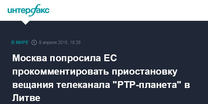 Москва попросила ЕС прокомментировать приостановку вещания телеканала "РТР-планета" в Литве
