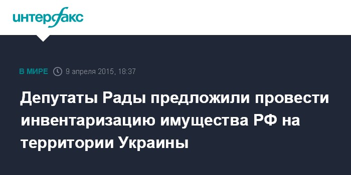 Проект постановления (№2624) об обращении Верховной рады в кабмин относительно проведения инвентаризации расположенного на территории Украины имущества, принадлежащего на праве собственности Российской Федерации и ее резидентам, зарегистрирован на сайте парламента в четверг.
