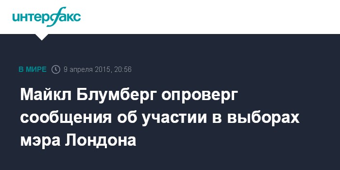 Таким образом, Блумберг опроверг сообщения британской газеты The Sunday Times о возможности участия в предстоящих выборах мэра столицы Великобритании.