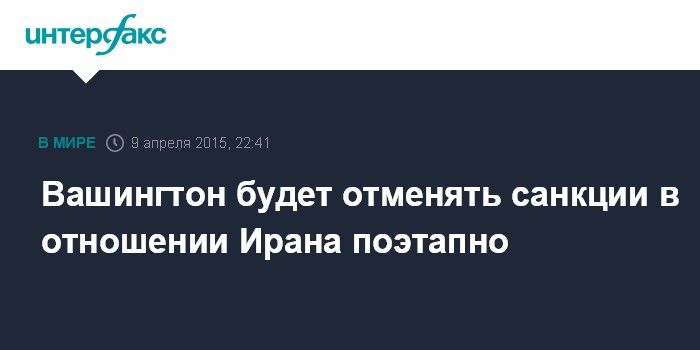 Москва. 9 апреля. INTERFAX.RU - Власти США будут снимать с Ирана санкции, введенные связи с ядерной программой, постепенно. Об этом заявил представитель госдепа США Джефф Ратке.
