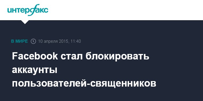 Москва. 10 апреля. INTERFAX.RU - По соцсети Facebook прокатилась волна блокировок учетных записей пользователей, которые указывают в имени священный сан.