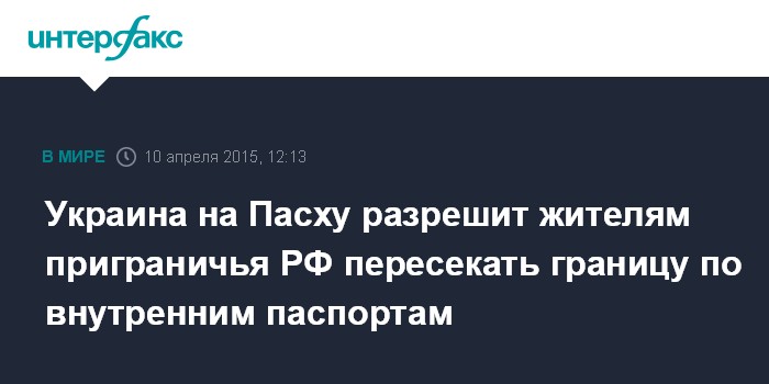 Ранее пресс-секретарь украинской погранслужбы Олег Слободян сообщил, что служба подготовит дополнительные пункты пропуска для жителей приграничных населенных пунктов для упрощенного пересечения границы в дни пасхальных праздников, но такой порядок пересечения границы будет касаться только жителей населенных пунктов, непосредственно прилегающих к границе. "Это не будет касаться жителей российских районов, прилегающих к границе, а также областей, тем более, других регионов РФ", - сказал пресс-секретарь.