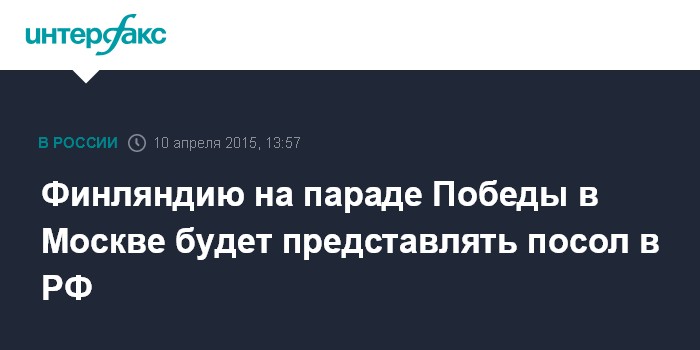 Финляндию на параде Победы в Москве будет представлять посол в РФ