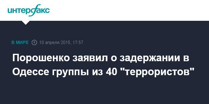 "В ночь со вчера на сегодня обезоружена огромная террористическая организация: больше 40 террористов задержаны, изъяты сотни единиц оружия, десятки килограммов взрывчатки, гранатометы, гранаты, планы по проведению террористических операций", - сказал Порошенко в пятницу журналистам в ходе презентации Концепции реформирования милиции в Одессе.