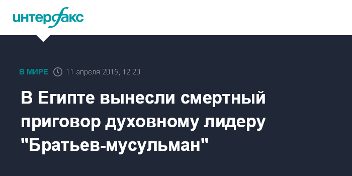 Москва. 11 апреля. INTERFAX.RU - Суд Египта приговорил к смертной казни духовного лидера движения "Братья-мусульмане" Мухаммеда Бадие и 13 его сторонников, сообщают в субботу арабские СМИ. Все они обвиняются в "провоцировании хаоса и насилия".