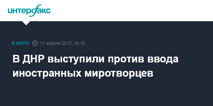 Москва. 11 апреля. INTERFAX.RU - Представитель ДНР выступил против намерения Киева добиваться размещения иностранных миротворцев на территории этой самопровозглашенной республики.