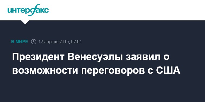 Москва. 12 апреля. INTERFAX.RU - Президент Венесуэлы Николас Мадуро на Саммите Америк заявил, что готов возобновить отношения с США в случае отмены санкций с их стороны, сообщило агентство Associated Press.